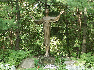 of the garden, shown left, is the statue of the resurrected Jesus, the "fifteenth station"