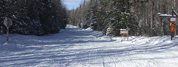 The intersection of Michigan Snowmonile trail 107 and 150